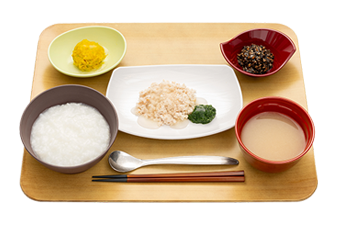 「ベース食」をカッターミキサーで1~2mm程度に刻んだものです。カッターミキサーに向かない献立や固い食材は除き、別の献立や食材に変更して、より食べやすい工夫をします。
